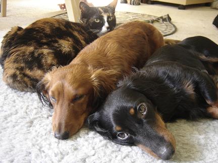 we have two cute little doggies. well, one little one and one big one. little boy thunder and big girl nyla. send us photos of your doggies and we will share them with our doggies and the rest of the world here. feel free to include a snippet about them if you like. THUNDER! dad's marley girl, dressed here as her alter ego